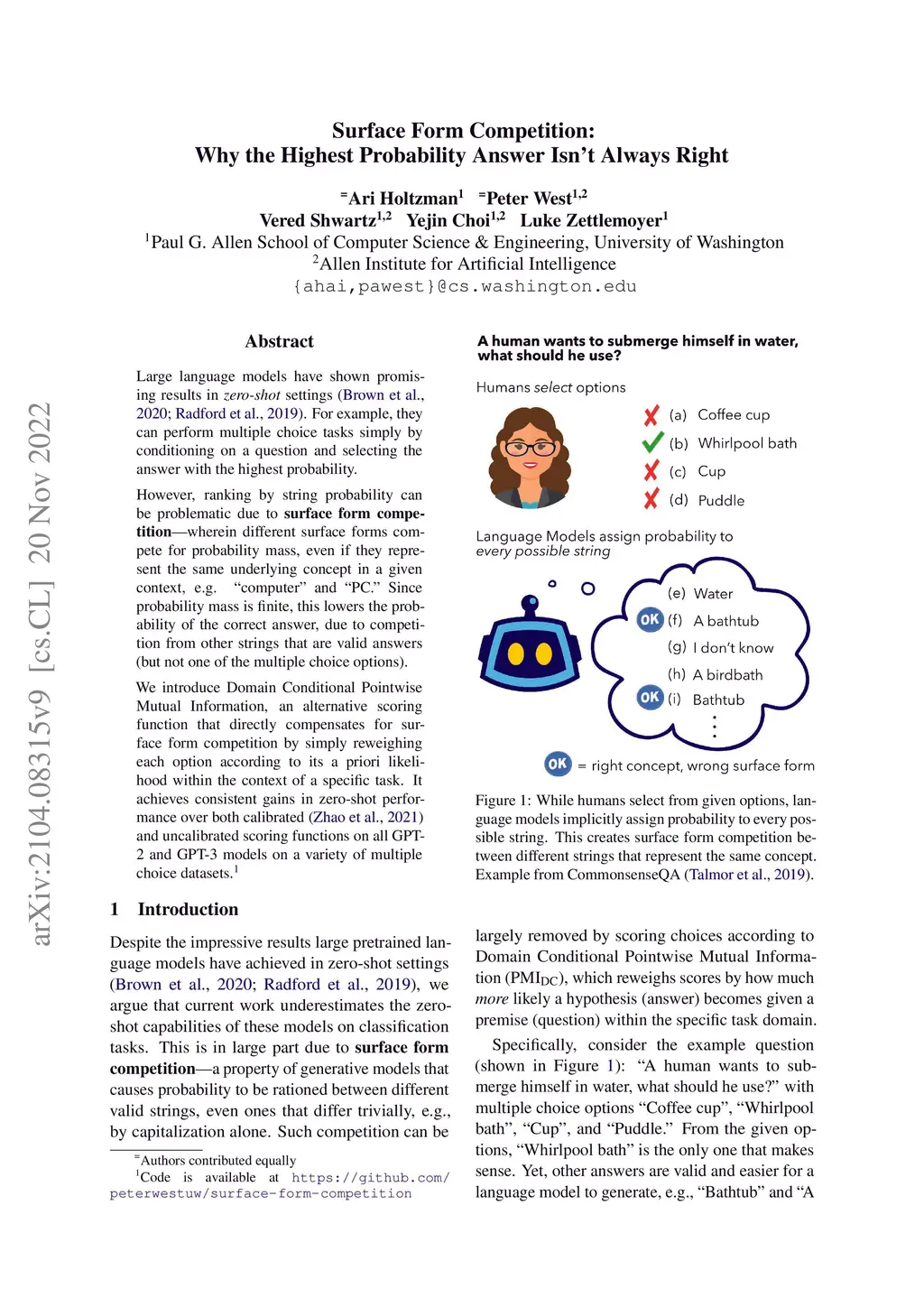 Surface Form Competition: Why the Highest Probability Answer Isn't