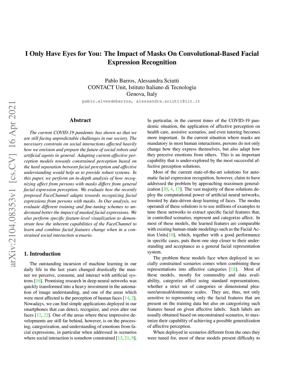 The current COVID-19 pandemic has shown us that we are still facing unpredictable challenges in our society. The necessary constrain on social interactions affected heavily how we envision and prepare the future of social robots and artificial agents in general. Adapting current affective perception models towards constrained perception based on the hard separation between facial perception and affective understanding would help us to provide robust systems. In this paper, we perform an in-depth analysis of how recognizing affect from persons with masks differs from general facial expression perception. We evaluate how the recently proposed FaceChannel adapts towards recognizing facial expressions from persons with masks. In Our analysis, we evaluate different training and fine-tuning schemes to understand better the impact of masked facial expressions. We also perform specific feature-level visualization to demonstrate how the inherent capabilities of the FaceChannel to learn and combine facial features change when in a constrained social interaction scenario.