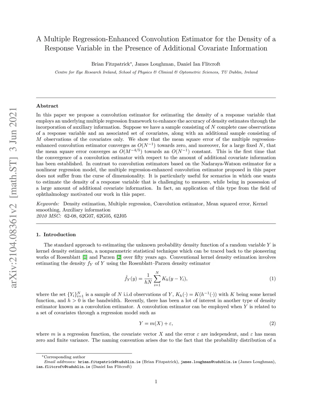 In this paper we propose a convolution estimator for estimating the density of a response variable that employs an underlying multiple regression framework to enhance the accuracy of density estimates through the incorporation of auxiliary information. Suppose we have a sample consisting of complete case observations of a response variable and an associated set of covariates, along with an additional sample consisting of observations of the covariates only. We show that the mean square error of the multiple regression-enhanced convolution estimator converges as towards zero, and moreover, for a large fixed , that the mean square error converges as towards an constant. This is the first time that the convergence of a convolution estimator with respect to the amount of additional covariate information has been established. In contrast to convolution estimators based on the Nadaraya-Watson estimator for a nonlinear regression model, the multiple regression-enhanced convolution estimator proposed in this paper does not suffer from the curse of dimensionality. It is particularly useful for scenarios in which one wants to estimate the density of a response variable that is challenging to measure, while being in possession of a large amount of additional covariate information. In fact, an application of this type from the field of ophthalmology motivated our work in this paper.