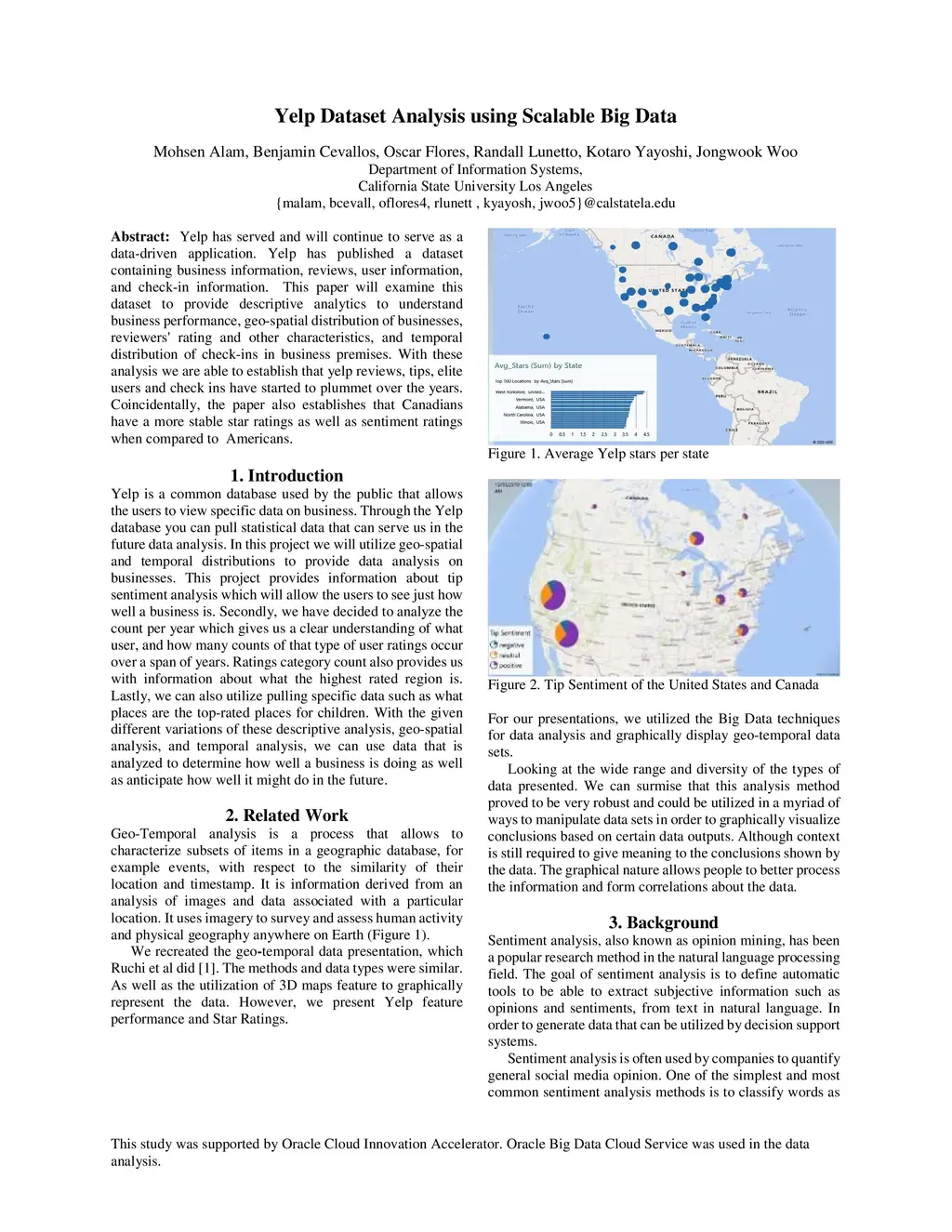 Yelp has served and will continue to serve as a data-driven application. Yelp has published a dataset containing business information, reviews, user information, and check-in information. This paper will examine this dataset to provide descriptive analytics to understand business performance, geo-spatial distribution of businesses, reviewers' rating and other characteristics, and temporal distribution of check-ins in business premises. With these analysis we are able to establish that yelp reviews, tips, elite users and check ins have started to plummet over the years. Coincidentally, the paper also establishes that Canadians have a more stable star ratings as well as sentiment ratings when compared to Americans.