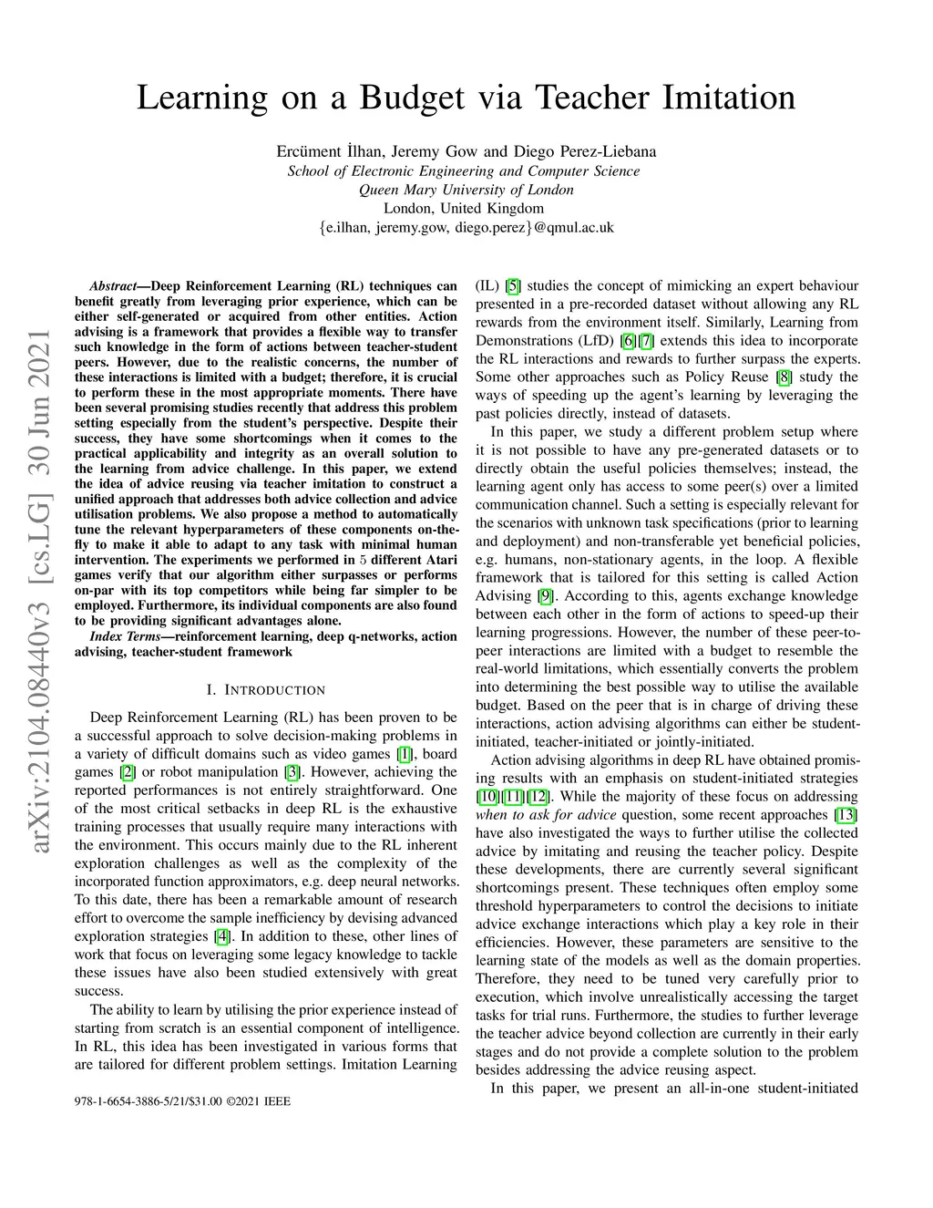 Deep Reinforcement Learning (RL) techniques can benefit greatly from leveraging prior experience, which can be either self-generated or acquired from other entities. Action advising is a framework that provides a flexible way to transfer such knowledge in the form of actions between teacher-student peers. However, due to the realistic concerns, the number of these interactions is limited with a budget; therefore, it is crucial to perform these in the most appropriate moments. There have been several promising studies recently that address this problem setting especially from the student's perspective. Despite their success, they have some shortcomings when it comes to the practical applicability and integrity as an overall solution to the learning from advice challenge. In this paper, we extend the idea of advice reusing via teacher imitation to construct a unified approach that addresses both advice collection and advice utilisation problems. We also propose a method to automatically tune the relevant hyperparameters of these components on-the-fly to make it able to adapt to any task with minimal human intervention. The experiments we performed in 5 different Atari games verify that our algorithm either surpasses or performs on-par with its top competitors while being far simpler to be employed. Furthermore, its individual components are also found to be providing significant advantages alone.