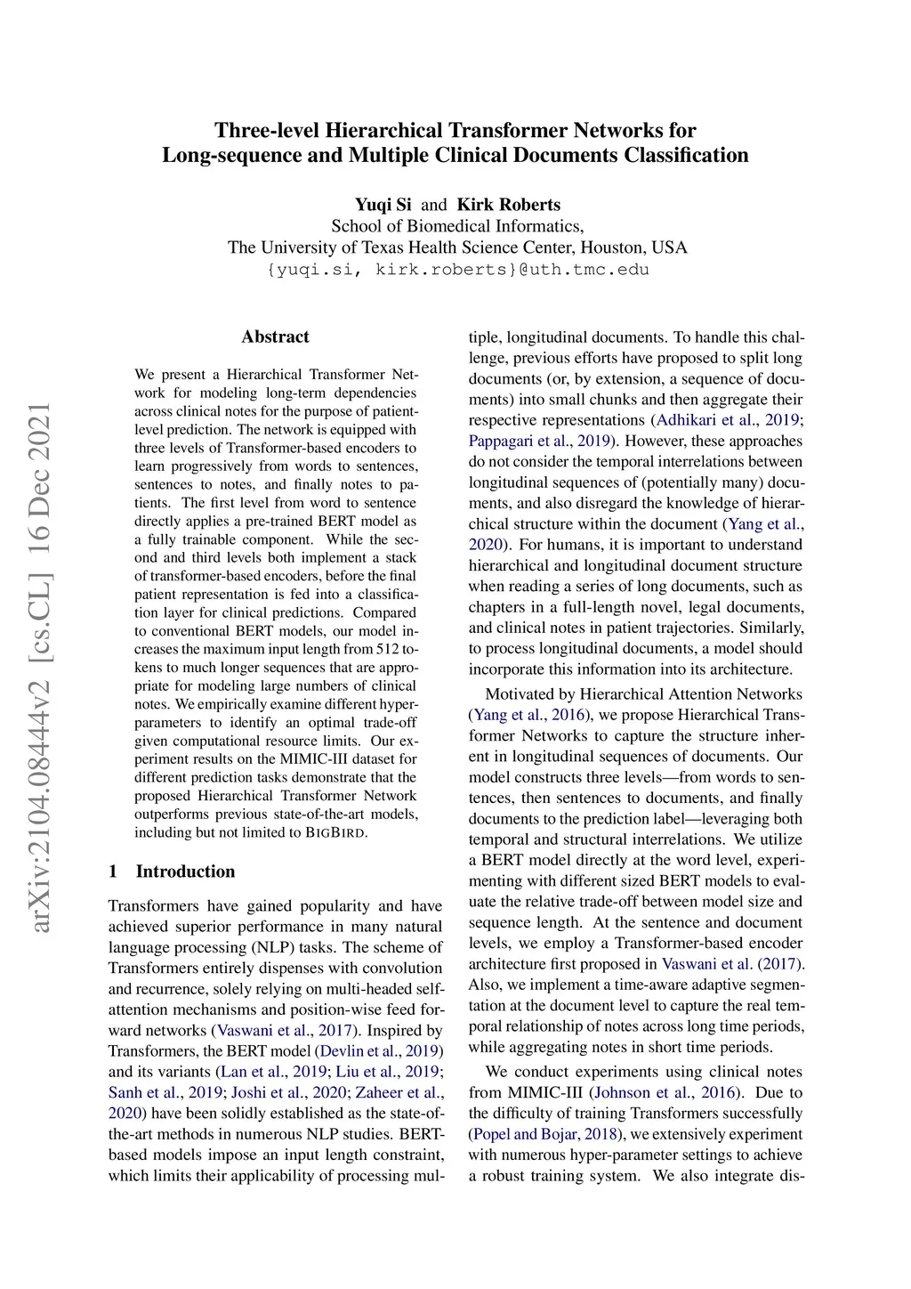 Three-level Hierarchical Transformer Networks for Long-sequence and