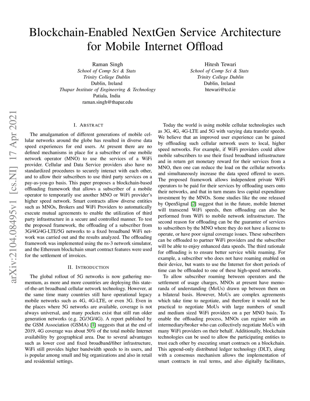 Blockchain-Enabled NextGen Service Architecture for Mobile Internet