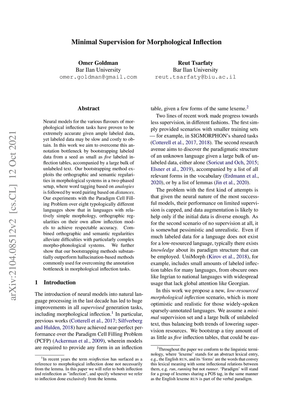 Neural models for the various flavours of morphological inflection tasks have proven to be extremely accurate given ample labeled data -- data that may be slow and costly to obtain. In this work we aim to overcome this annotation bottleneck by bootstrapping labeled data from a seed as little as {\em five} labeled paradigms, accompanied by a large bulk of unlabeled text. Our approach exploits different kinds of regularities in morphological systems in a two-phased setup, where word tagging based on {\em analogies} is followed by word pairing based on {\em distances}. We experiment with the Paradigm Cell Filling Problem over eight typologically different languages, and find that, in languages with relatively simple morphology, orthographic regularities on their own allow inflection models to achieve respectable accuracy. Combined orthographic and semantic regularities alleviate difficulties with particularly complex morpho-phonological systems. Our results suggest that hand-crafting many tagged examples might be an unnecessary effort. However, more work is needed in order to address rarely used forms.