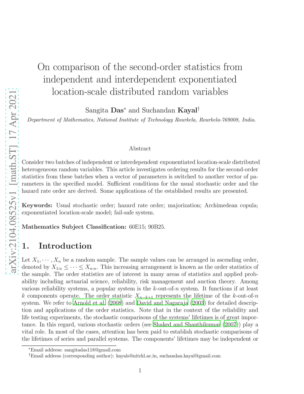 interdependent exponentiated location-scale distributed random variables
