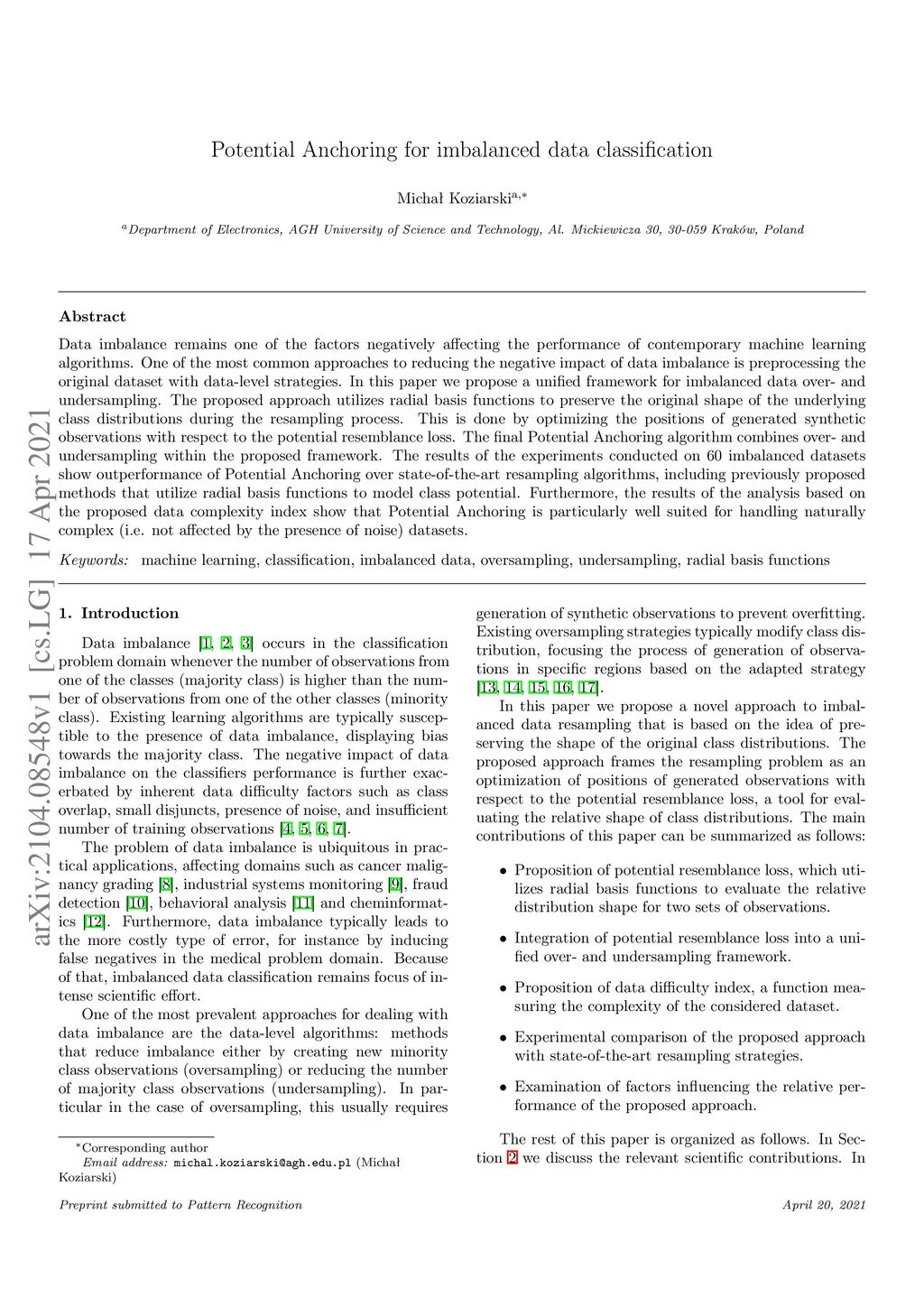 Data imbalance remains one of the factors negatively affecting the performance of contemporary machine learning algorithms. One of the most common approaches to reducing the negative impact of data imbalance is preprocessing the original dataset with data-level strategies. In this paper we propose a unified framework for imbalanced data over- and undersampling. The proposed approach utilizes radial basis functions to preserve the original shape of the underlying class distributions during the resampling process. This is done by optimizing the positions of generated synthetic observations with respect to the potential resemblance loss. The final Potential Anchoring algorithm combines over- and undersampling within the proposed framework. The results of the experiments conducted on 60 imbalanced datasets show outperformance of Potential Anchoring over state-of-the-art resampling algorithms, including previously proposed methods that utilize radial basis functions to model class potential. Furthermore, the results of the analysis based on the proposed data complexity index show that Potential Anchoring is particularly well suited for handling naturally complex (i.e. not affected by the presence of noise) datasets.
