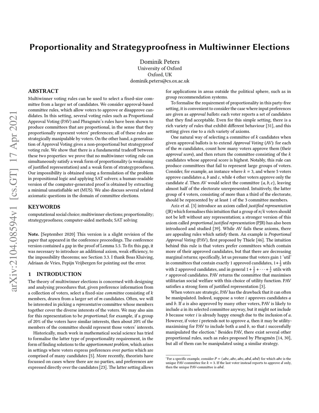 Multiwinner voting rules can be used to select a fixed-size committee from a larger set of candidates. We consider approval-based committee rules, which allow voters to approve or disapprove candidates. In this setting, several voting rules such as Proportional Approval Voting (PAV) and Phragm\én's rules have been shown to produce committees that are proportional, in the sense that they proportionally represent voters' preferences; all of these rules are strategically manipulable by voters. On the other hand, a generalisation of Approval Voting gives a non-proportional but strategyproof voting rule. We show that there is a fundamental tradeoff between these two properties: we prove that no multiwinner voting rule can simultaneously satisfy a weak form of proportionality (a weakening of justified representation) and a weak form of strategyproofness. Our impossibility is obtained using a formulation of the problem in propositional logic and applying SAT solvers; a human-readable version of the computer-generated proof is obtained by extracting a minimal unsatisfiable set (MUS). We also discuss several related axiomatic questions in the domain of committee elections.