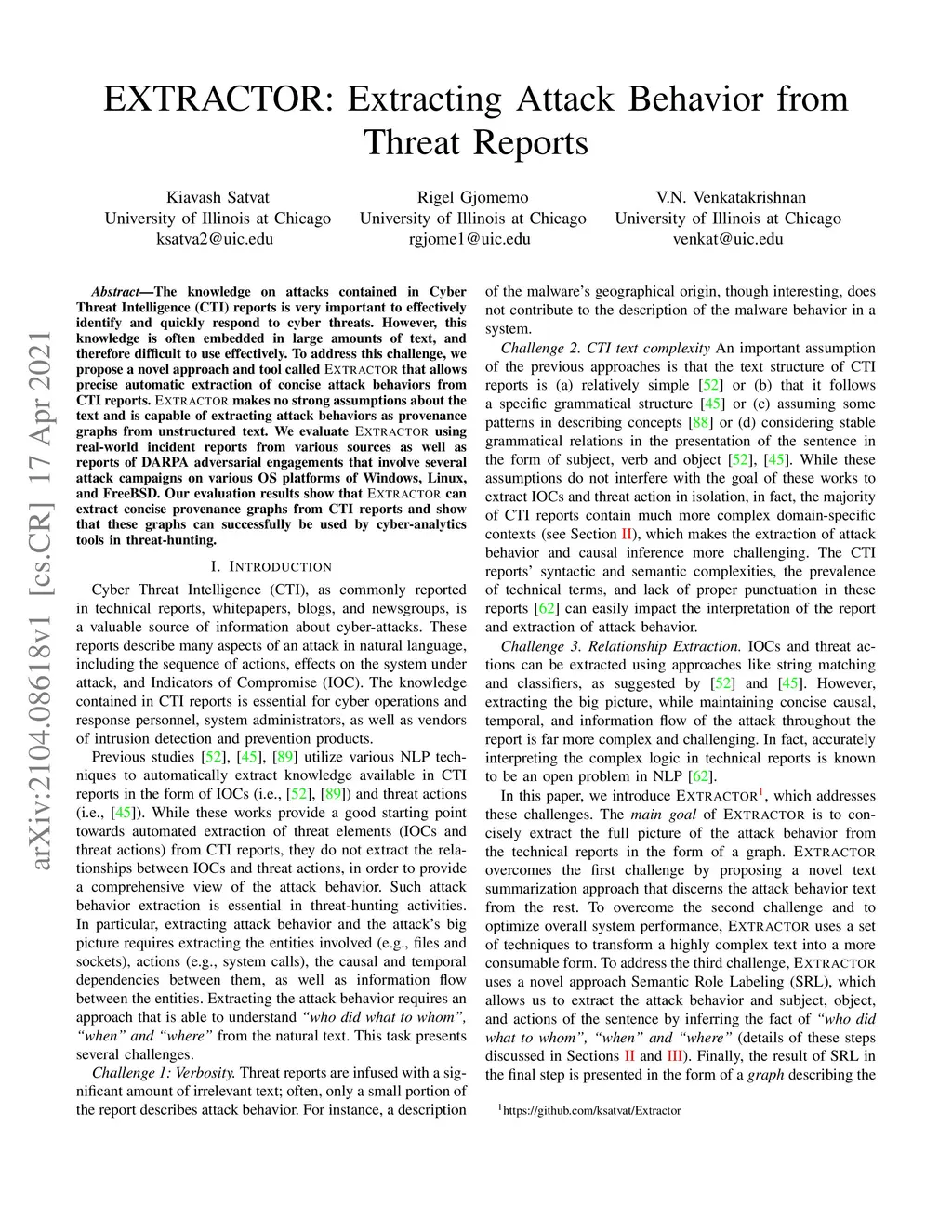 EXTRACTOR: Extracting Attack Behavior from Threat Reports