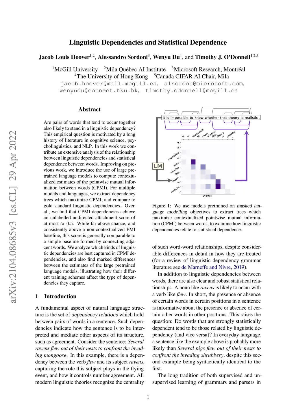 Linguistic Dependencies and Statistical Dependence