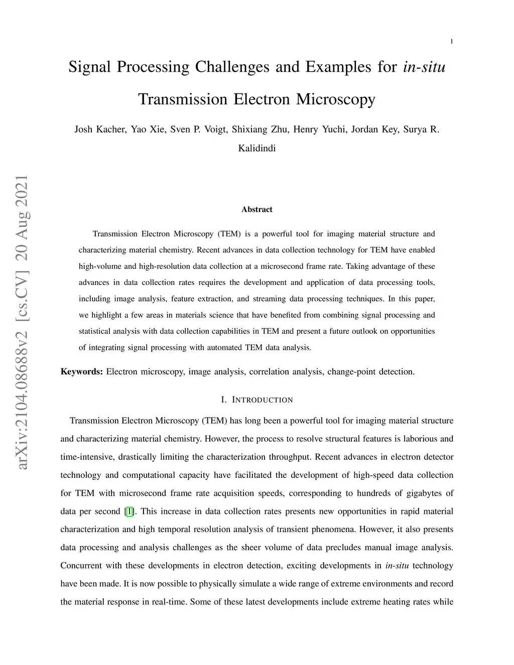 Transmission Electron Microscopy (TEM) is a powerful tool for imaging material structure and characterizing material chemistry. Recent advances in data collection technology for TEM have enabled high-volume and high-resolution data collection at a microsecond frame rate. Taking advantage of these advances in data collection rates requires the development and application of data processing tools, including image analysis, feature extraction, and streaming data processing techniques. In this paper, we highlight a few areas in materials science that have benefited from combining signal processing and statistical analysis with data collection capabilities in TEM and present a future outlook on opportunities of integrating signal processing with automated TEM data analysis.