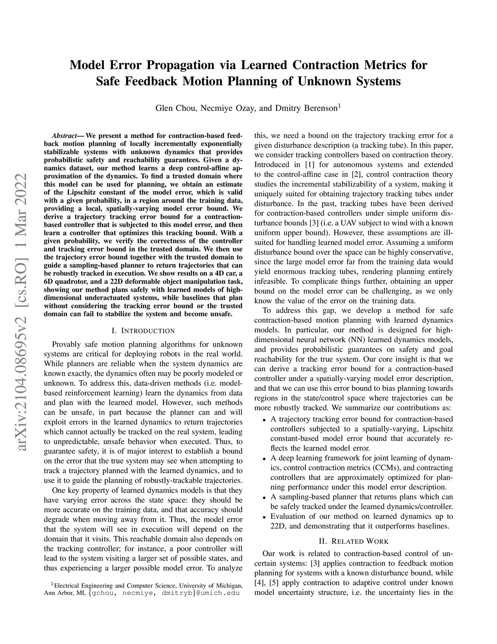 Model Error Propagation via Learned Contraction Metrics for Safe