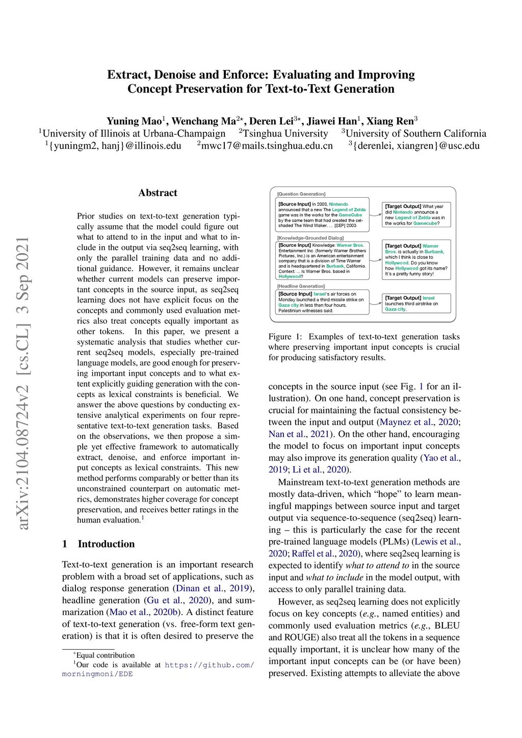 Prior studies on text-to-text generation typically assume that the model could figure out what to attend to in the input and what to include in the output via seq2seq learning, with only the parallel training data and no additional guidance. However, it remains unclear whether current models can preserve important concepts in the source input, as seq2seq learning does not have explicit focus on the concepts and commonly used evaluation metrics also treat concepts equally important as other tokens. In this paper, we present a systematic analysis that studies whether current seq2seq models, especially pre-trained language models, are good enough for preserving important input concepts and to what extent explicitly guiding generation with the concepts as lexical constraints is beneficial. We answer the above questions by conducting extensive analytical experiments on four representative text-to-text generation tasks. Based on the observations, we then propose a simple yet effective framework to automatically extract, denoise, and enforce important input concepts as lexical constraints. This new method performs comparably or better than its unconstrained counterpart on automatic metrics, demonstrates higher coverage for concept preservation, and receives better ratings in the human evaluation. Our code is available at https://github.com/morningmoni/EDE.