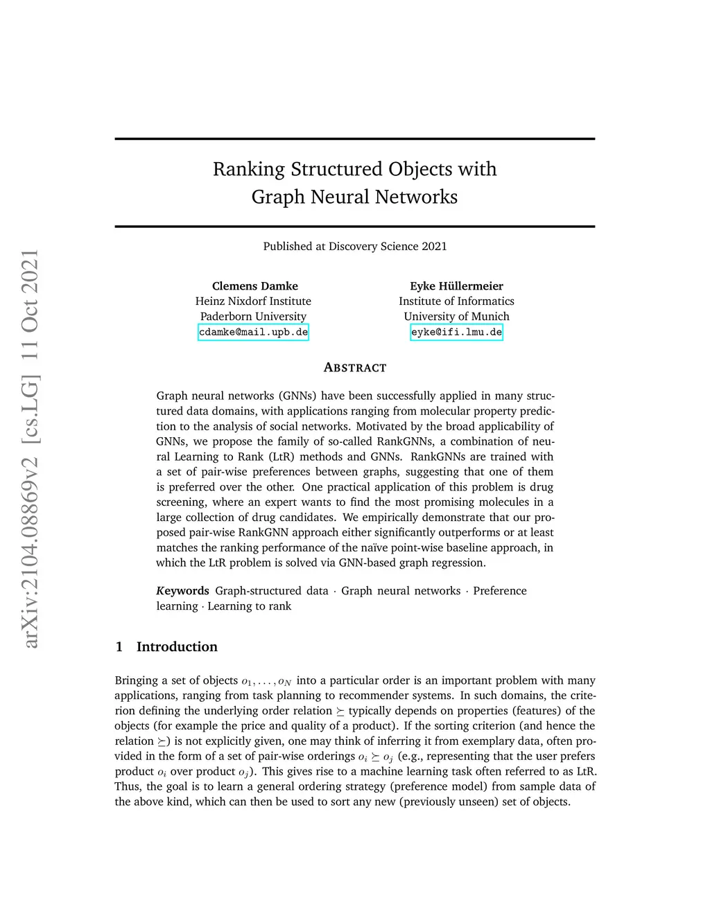 Graph neural networks (GNNs) have been successfully applied in many structured data domains, with applications ranging from molecular property prediction to the analysis of social networks. Motivated by the broad applicability of GNNs, we propose the family of so-called RankGNNs, a combination of neural Learning to Rank (LtR) methods and GNNs. RankGNNs are trained with a set of pair-wise preferences between graphs, suggesting that one of them is preferred over the other. One practical application of this problem is drug screening, where an expert wants to find the most promising molecules in a large collection of drug candidates. We empirically demonstrate that our proposed pair-wise RankGNN approach either significantly outperforms or at least matches the ranking performance of the naive point-wise baseline approach, in which the LtR problem is solved via GNN-based graph regression.