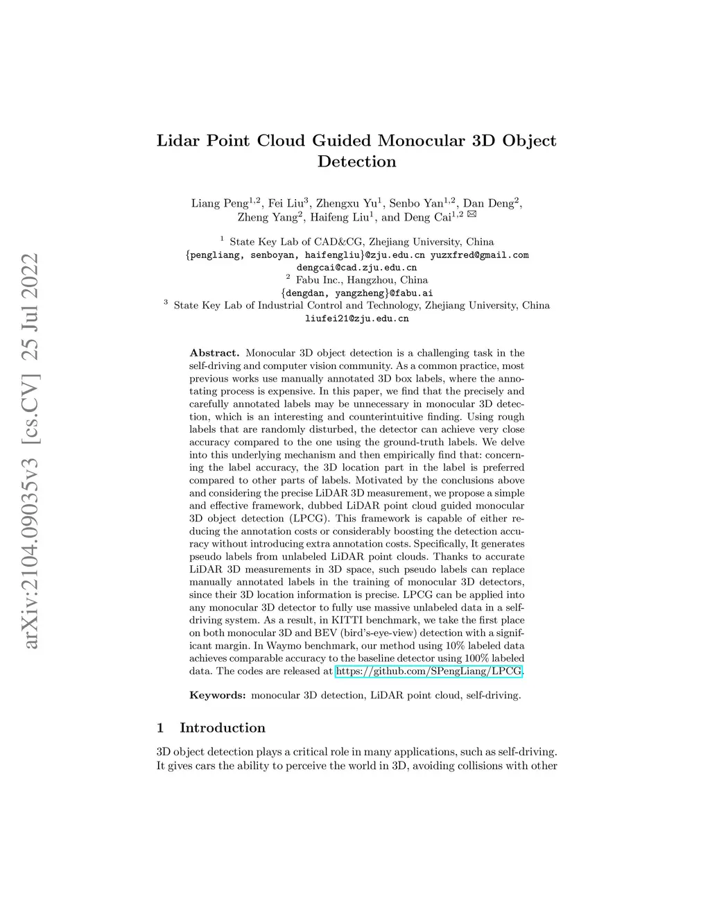 Lidar Point Cloud Guided Monocular 3D Object Detection