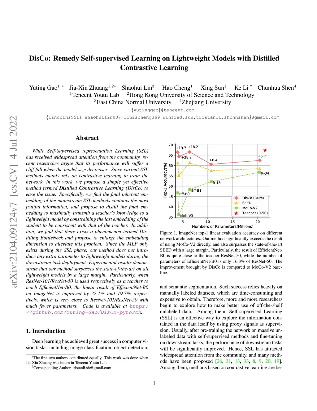 DisCo: Remedy Self-supervised Learning on Lightweight Models with