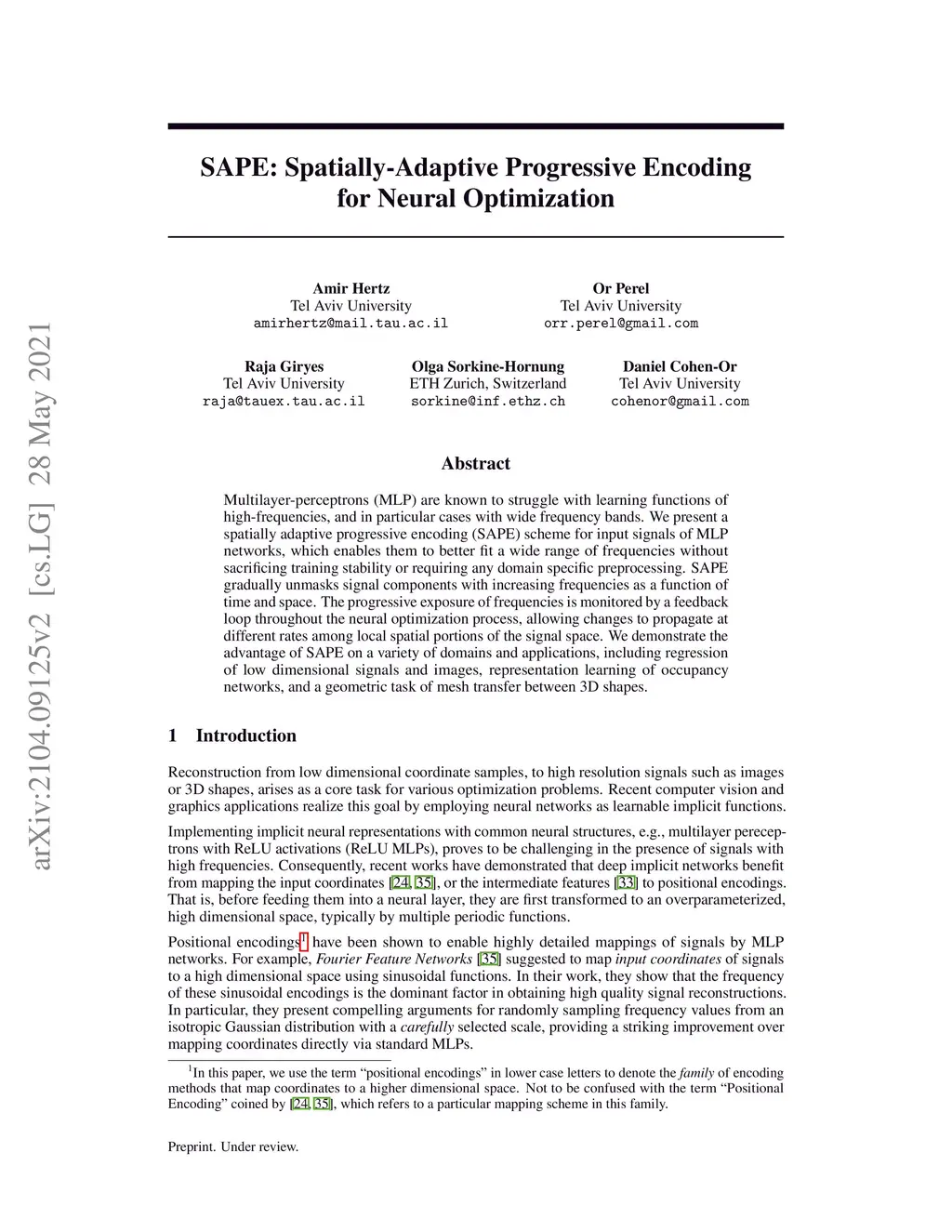 SAPE: Spatially-Adaptive Progressive Encoding for Neural Optimization