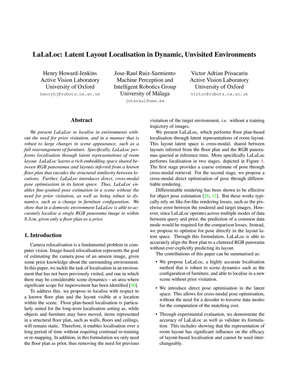 LaLaLoc: Latent Layout Localisation in Dynamic, Unvisited Environments