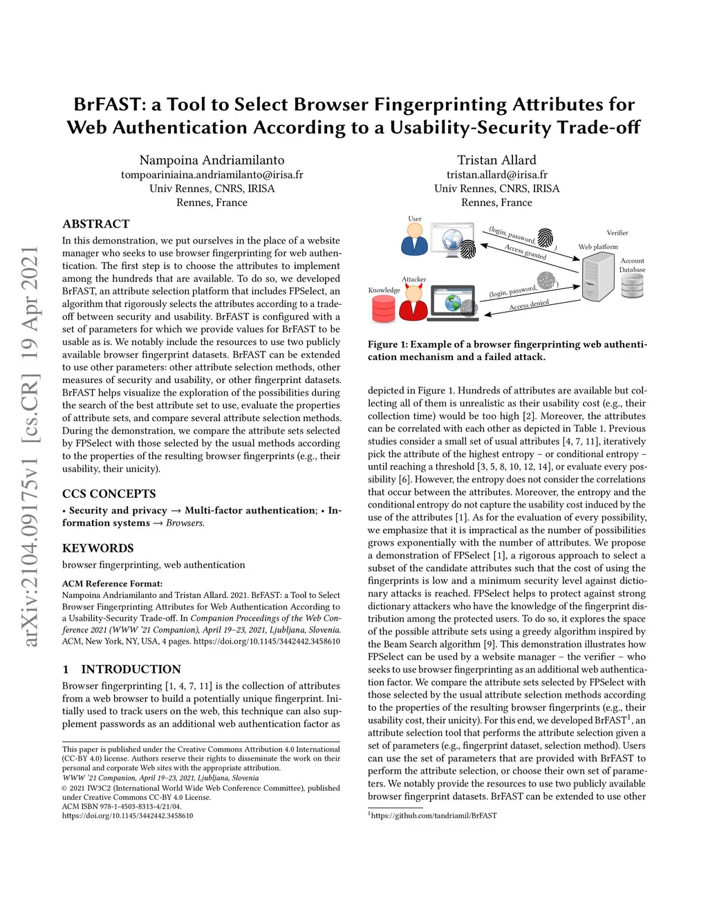 BrFAST: a Tool to Select Browser Fingerprinting Attributes for Web