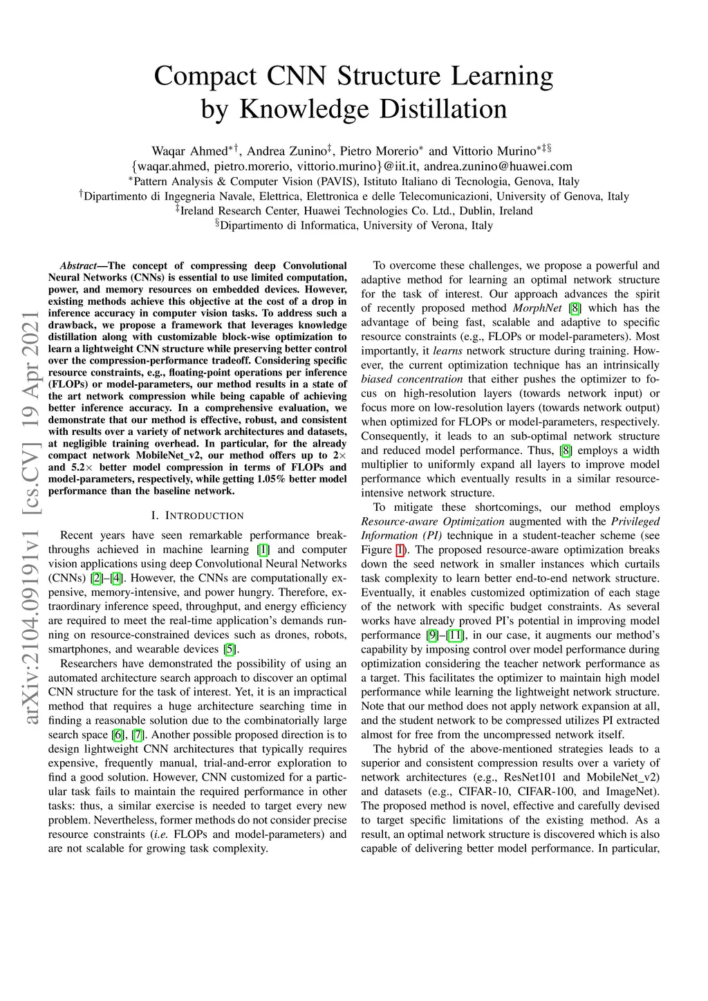 The concept of compressing deep Convolutional Neural Networks (CNNs) is essential to use limited computation, power, and memory resources on embedded devices. However, existing methods achieve this objective at the cost of a drop in inference accuracy in computer vision tasks. To address such a drawback, we propose a framework that leverages knowledge distillation along with customizable block-wise optimization to learn a lightweight CNN structure while preserving better control over the compression-performance tradeoff. Considering specific resource constraints, e.g., floating-point operations per inference (FLOPs) or model-parameters, our method results in a state of the art network compression while being capable of achieving better inference accuracy. In a comprehensive evaluation, we demonstrate that our method is effective, robust, and consistent with results over a variety of network architectures and datasets, at negligible training overhead. In particular, for the already compact network MobileNet_v2, our method offers up to 2x and 5.2x better model compression in terms of FLOPs and model-parameters, respectively, while getting 1.05% better model performance than the baseline network.