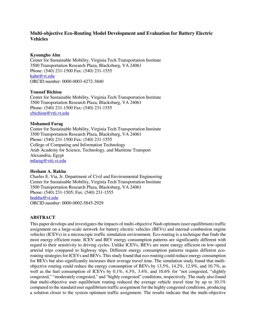 Multi-objective Eco-Routing Model Development and Evaluation for Battery