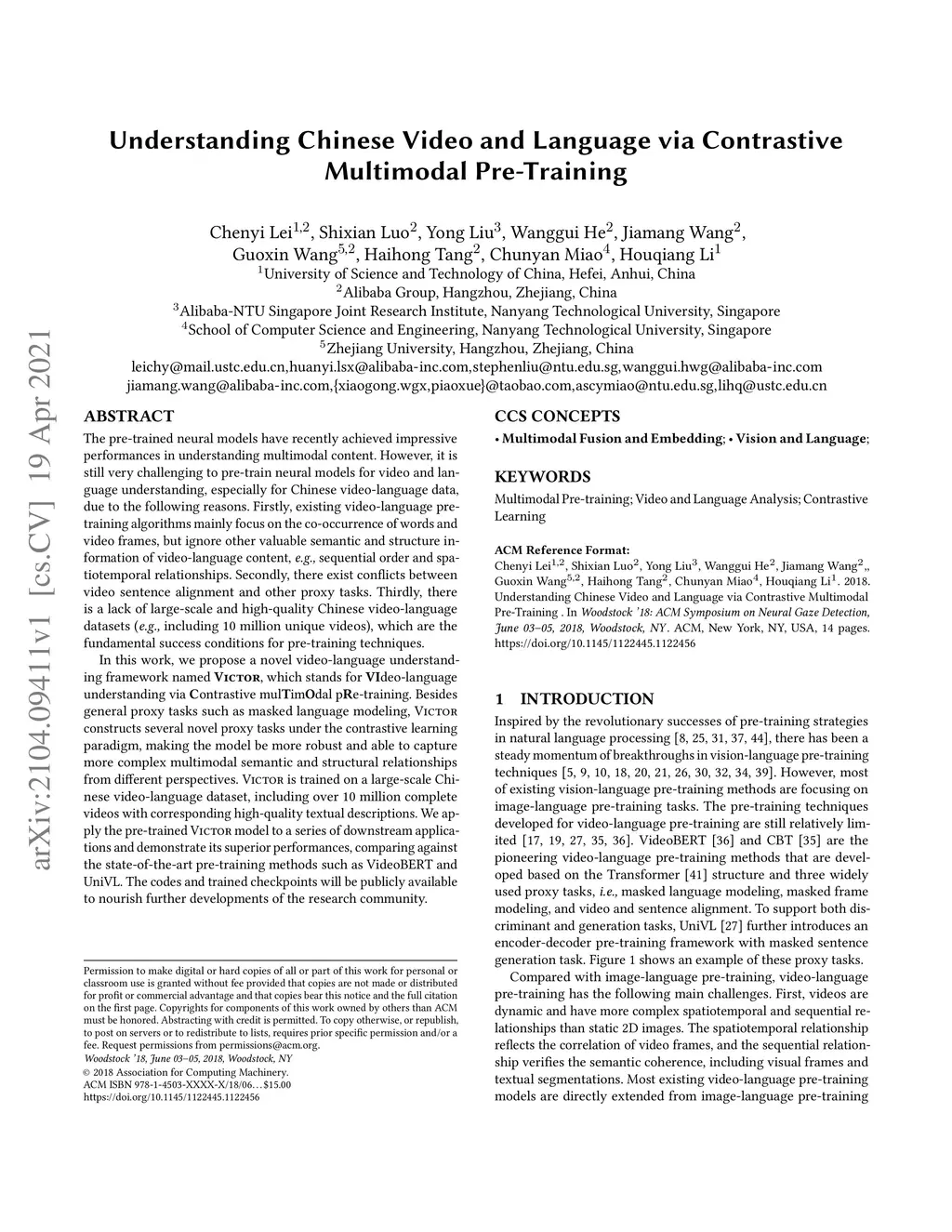 Understanding Chinese Video and Language via Contrastive Multimodal