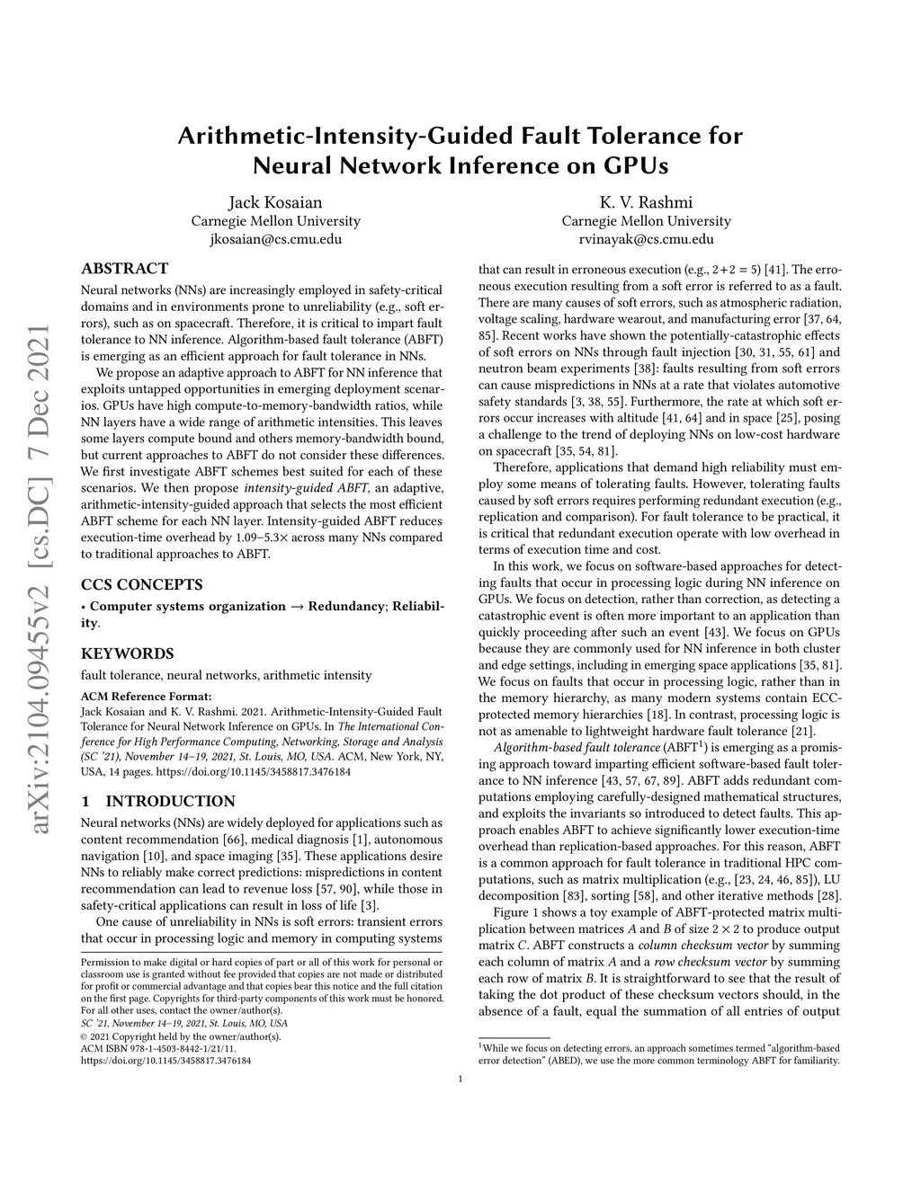 Arithmetic-Intensity-Guided Fault Tolerance for Neural Network Inference