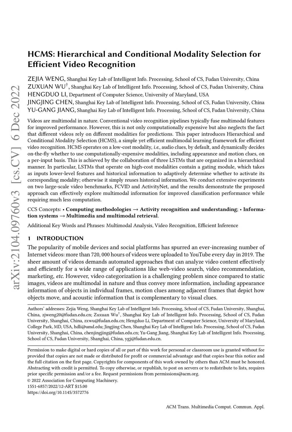 HCMS: Hierarchical and Conditional Modality Selection for Efficient