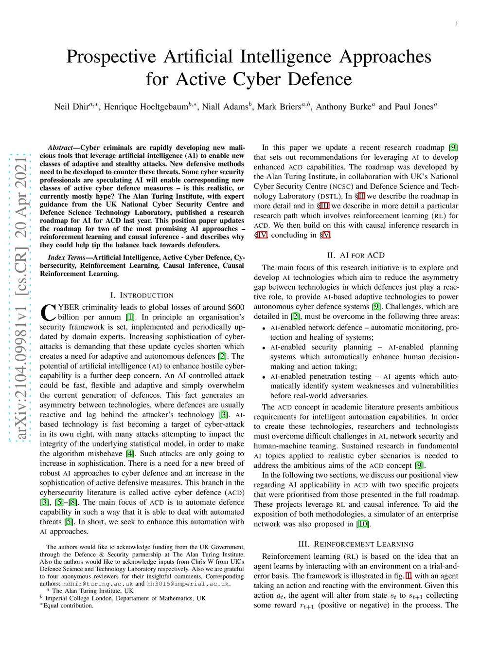 Cybercriminals are rapidly developing new malicious tools that leverage artificial intelligence (AI) to enable new classes of adaptive and stealthy attacks. New defensive methods need to be developed to counter these threats. Some cybersecurity professionals are speculating AI will enable corresponding new classes of active cyber defence measures -- is this realistic, or currently mostly hype? The Alan Turing Institute, with expert guidance from the UK National Cyber Security Centre and Defence Science Technology Laboratory, published a research roadmap for AI for ACD last year. This position paper updates the roadmap for two of the most promising AI approaches -- reinforcement learning and causal inference - and describes why they could help tip the balance back towards defenders.