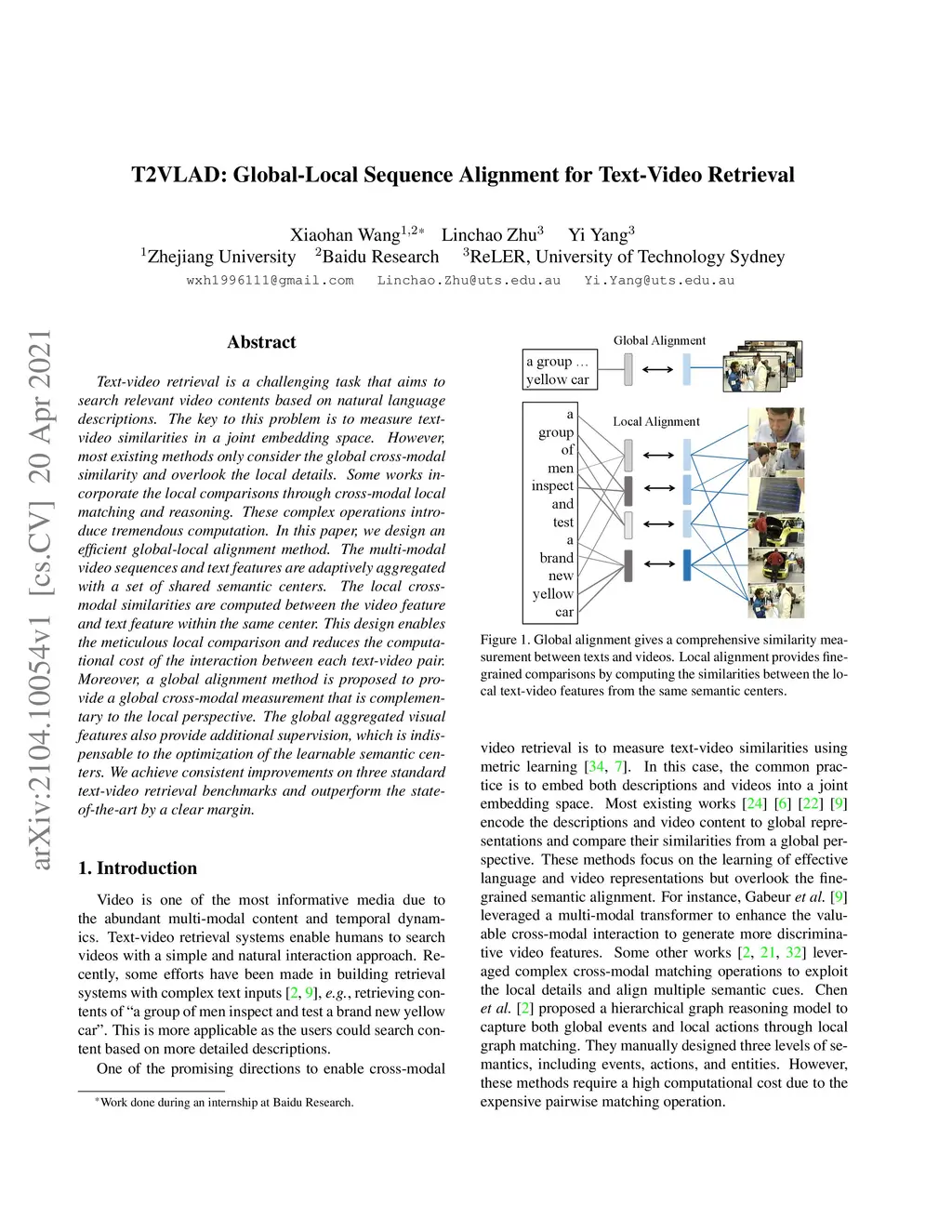 T2VLAD: Global-Local Sequence Alignment for Text-Video Retrieval