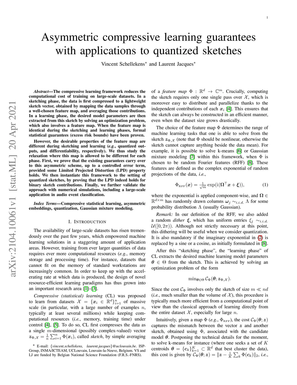 Asymmetric compressive learning guarantees with applications to