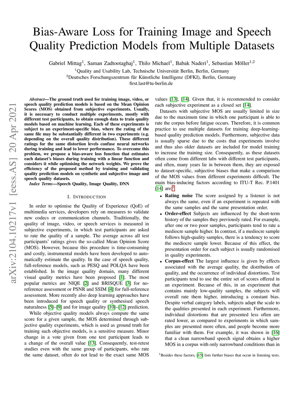 Bias-Aware Loss for Training Image and Speech Quality Prediction Models