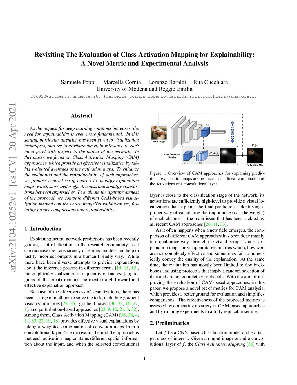 As the request for deep learning solutions increases, the need for explainability is even more fundamental. In this setting, particular attention has been given to visualization techniques, that try to attribute the right relevance to each input pixel with respect to the output of the network. In this paper, we focus on Class Activation Mapping (CAM) approaches, which provide an effective visualization by taking weighted averages of the activation maps. To enhance the evaluation and the reproducibility of such approaches, we propose a novel set of metrics to quantify explanation maps, which show better effectiveness and simplify comparisons between approaches. To evaluate the appropriateness of the proposal, we compare different CAM-based visualization methods on the entire ImageNet validation set, fostering proper comparisons and reproducibility.