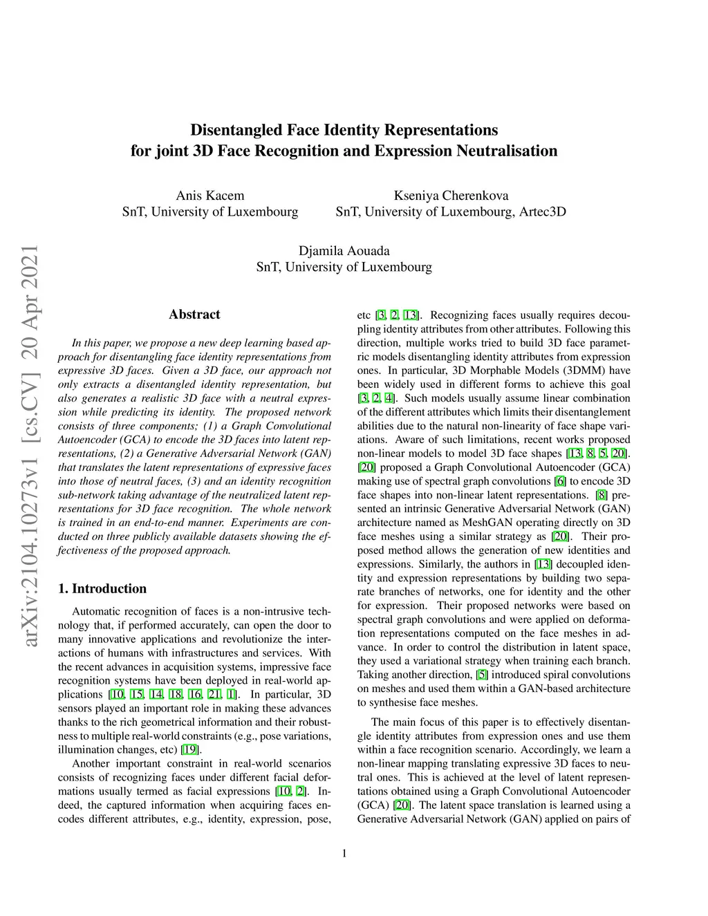 In this paper, we propose a new deep learning-based approach for disentangling face identity representations from expressive 3D faces. Given a 3D face, our approach not only extracts a disentangled identity representation but also generates a realistic 3D face with a neutral expression while predicting its identity. The proposed network consists of three components; (1) a Graph Convolutional Autoencoder (GCA) to encode the 3D faces into latent representations, (2) a Generative Adversarial Network (GAN) that translates the latent representations of expressive faces into those of neutral faces, (3) and an identity recognition sub-network taking advantage of the neutralized latent representations for 3D face recognition. The whole network is trained in an end-to-end manner. Experiments are conducted on three publicly available datasets showing the effectiveness of the proposed approach.