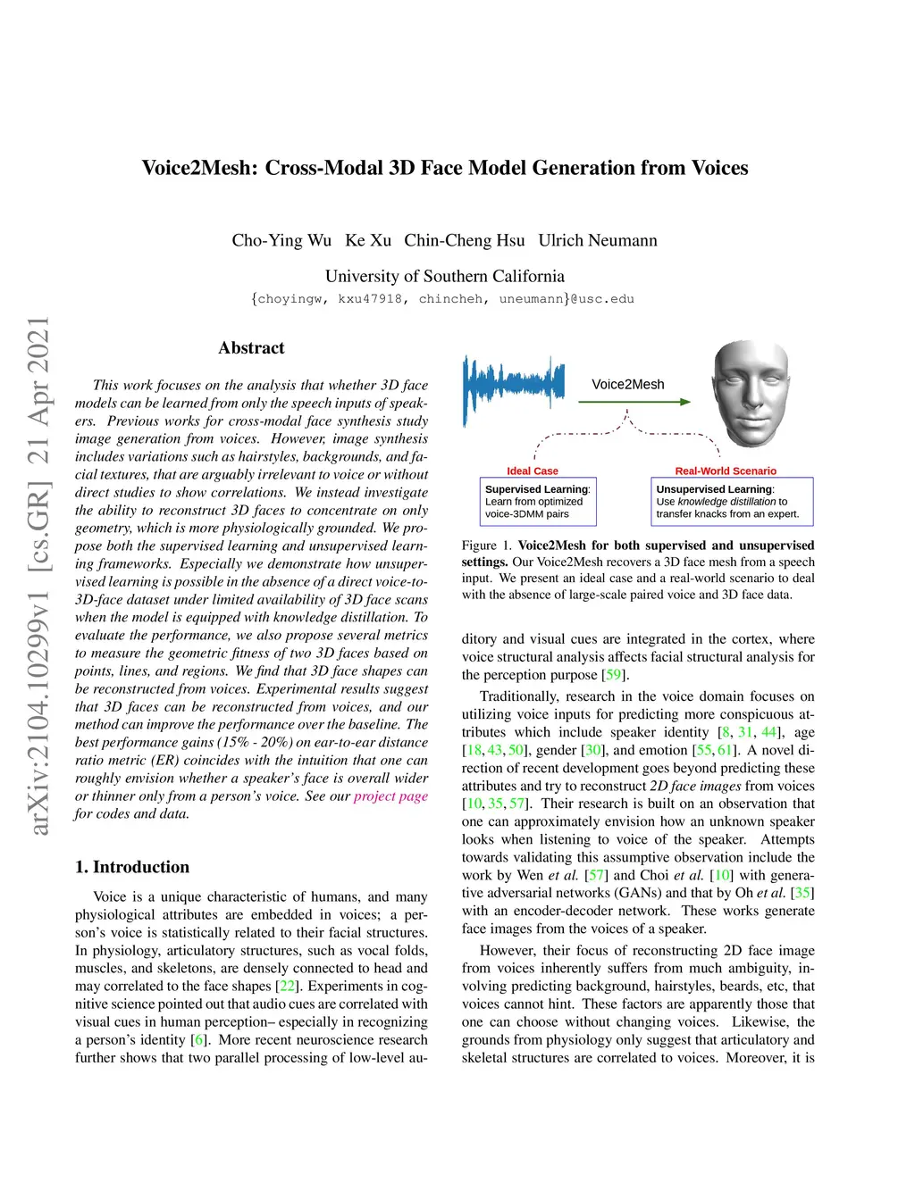 Voice2Mesh: Cross-Modal 3D Face Model Generation from Voices