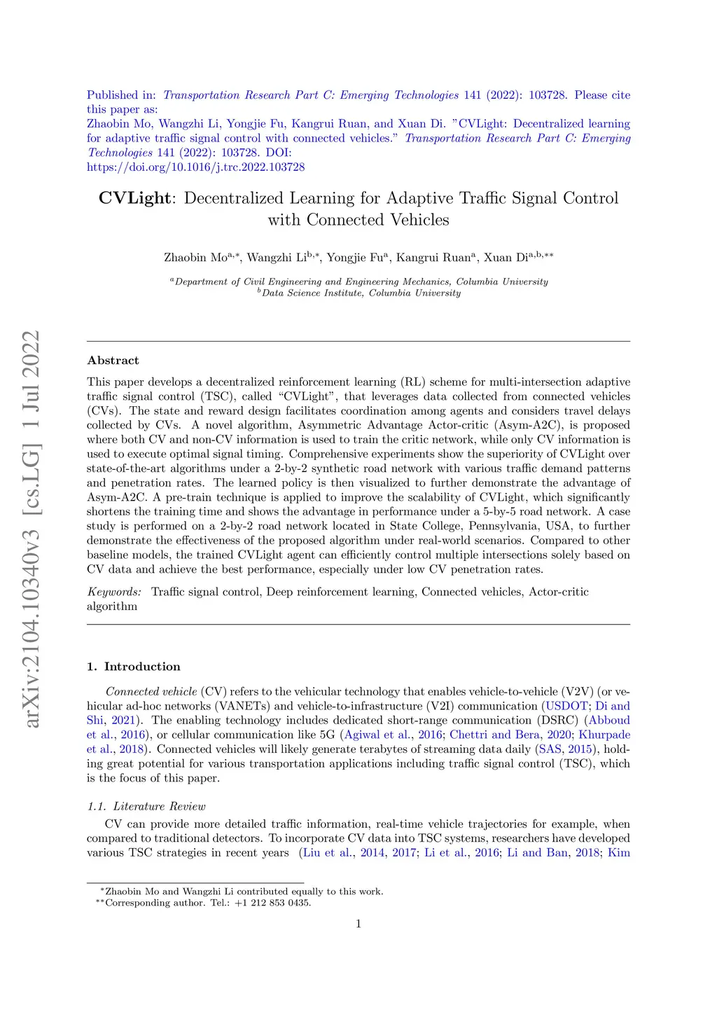 CVLight: Decentralized Learning for Adaptive Traffic Signal Control with
