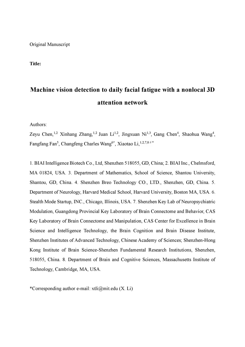Machine vision detection to daily facial fatigue with a nonlocal 3D