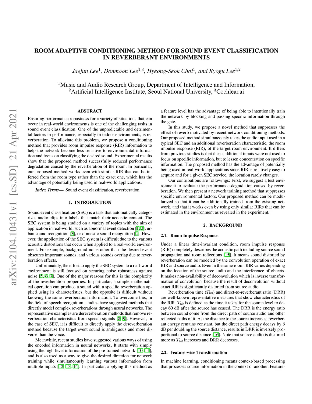 Room adaptive conditioning method for sound event classification in