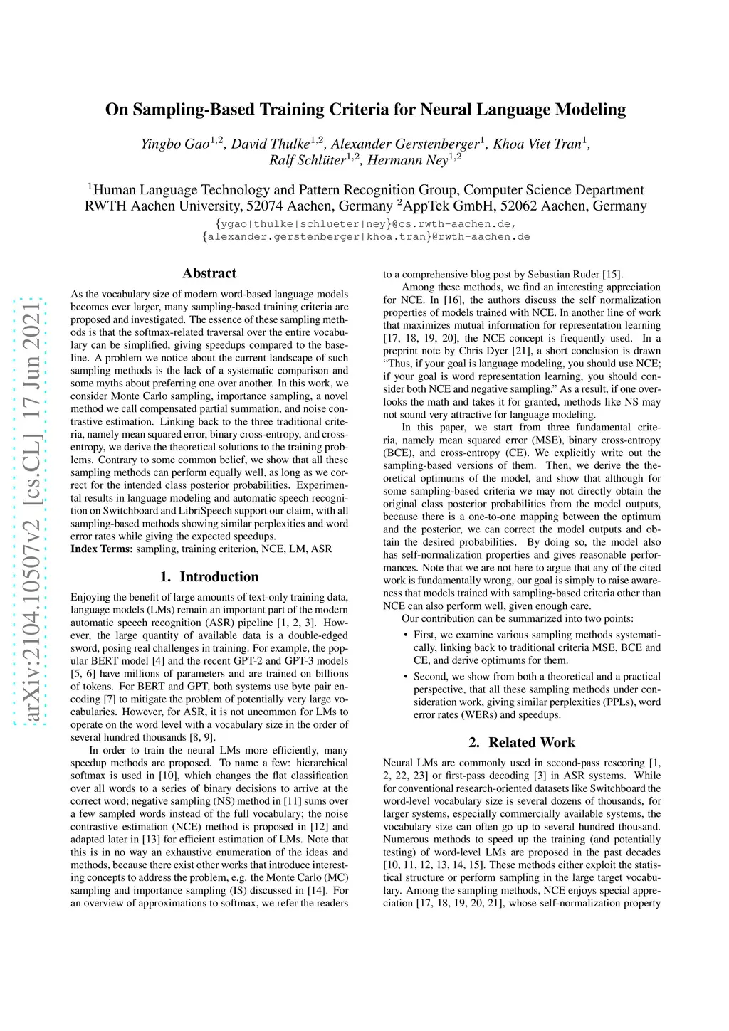 On Sampling-Based Training Criteria for Neural Language Modeling