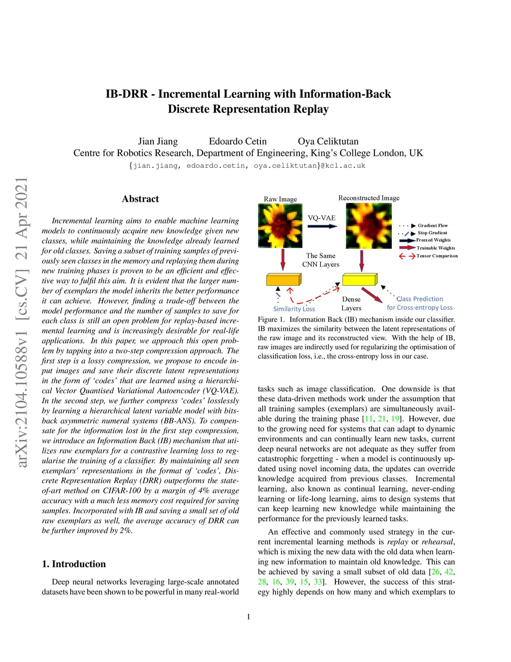 IB-DRR: Incremental Learning with Information-Back Discrete