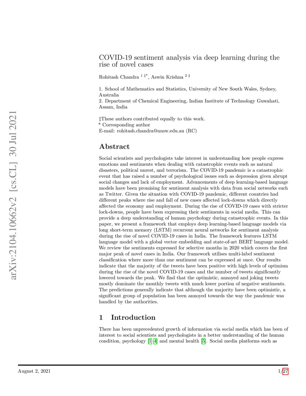 COVID-19 sentiment analysis via deep learning during the rise of novel