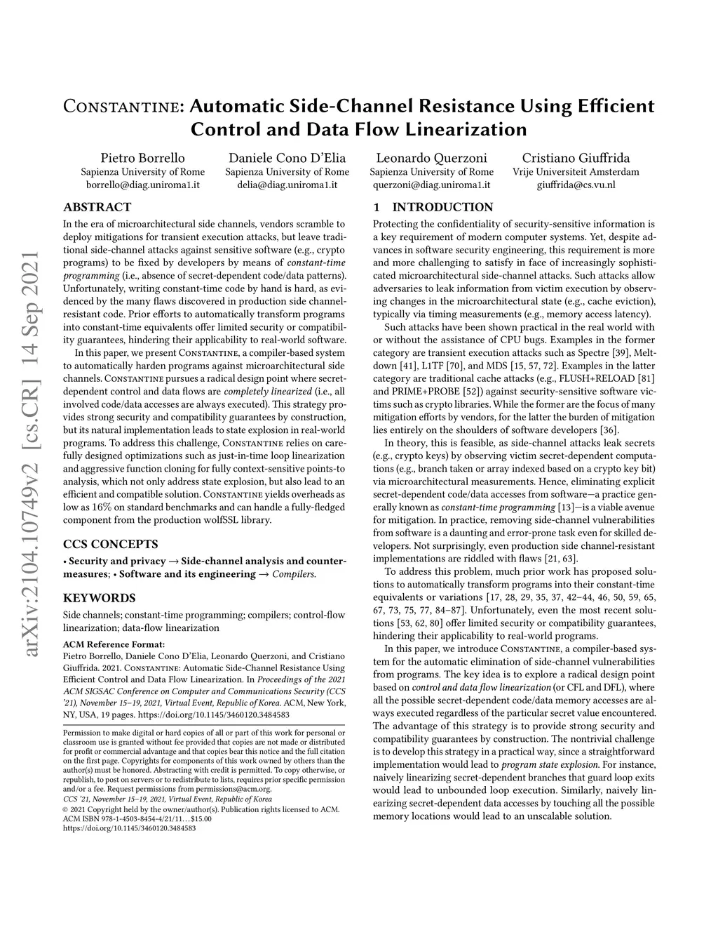 Constantine: Automatic Side-Channel Resistance Using Efficient Control