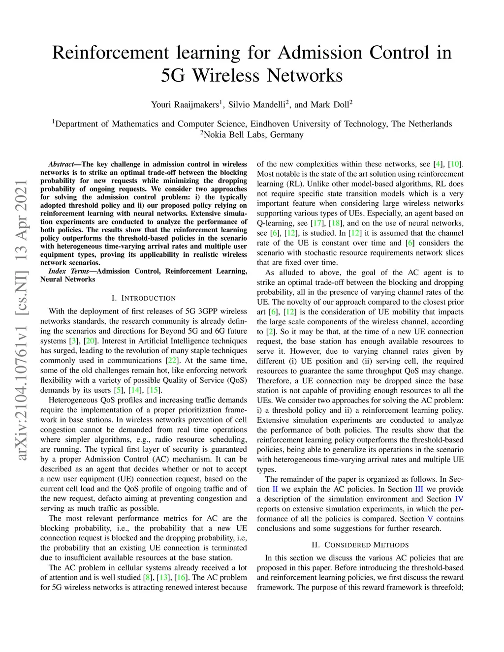 Reinforcement learning for Admission Control in 5G Wireless Networks