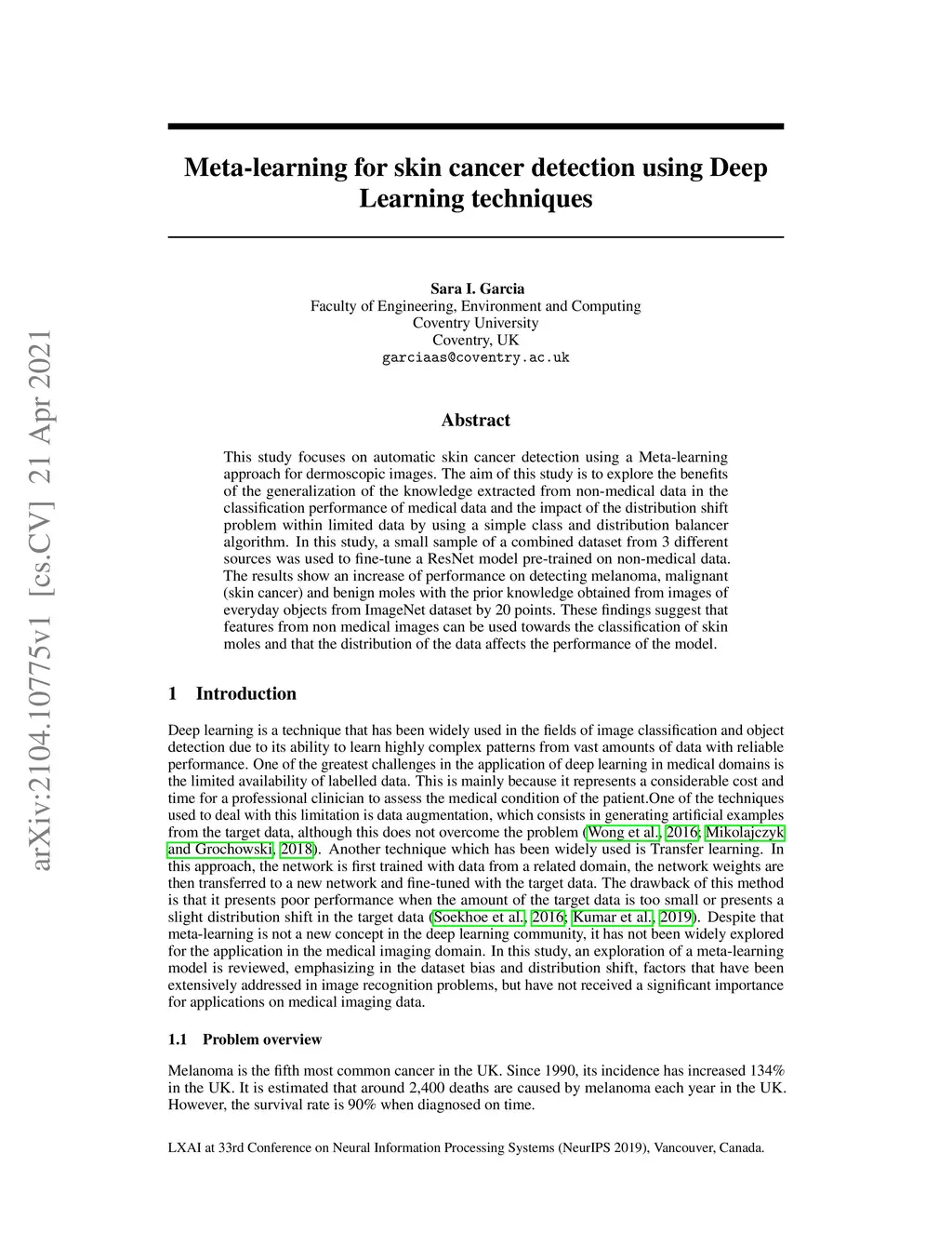 Meta-learning for skin cancer detection using Deep Learning Techniques
