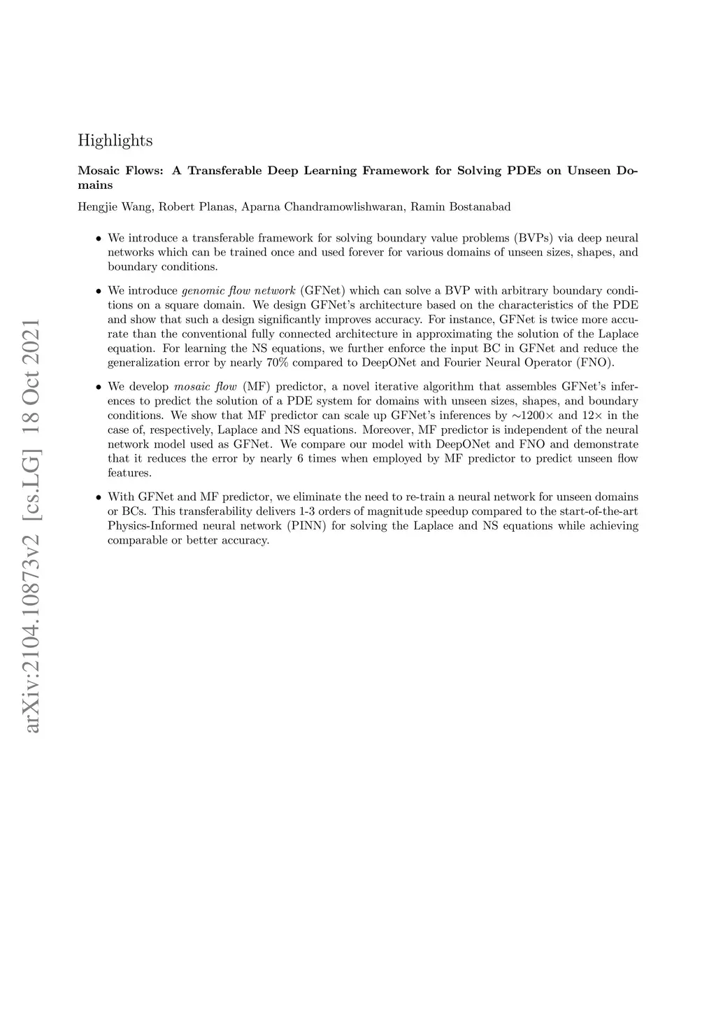 Physics-informed neural networks (PINNs) are increasingly employed to replace/augment traditional numerical methods in solving partial differential equations (PDEs). While state-of-the-art PINNs have many attractive features, they approximate a specific realization of a PDE system and hence are problem-specific. That is, the model needs to be re-trained each time the boundary conditions (BCs) and domain shape/size change. This limitation prohibits the application of PINNs to realistic or large-scale engineering problems especially since the costs and efforts associated with their training are considerable. We introduce a transferable framework for solving boundary value problems (BVPs) via deep neural networks which can be trained once and used forever for various unseen domains and BCs. We first introduce genomic flow network(GFNet), a neural network that can infer the solution of a BVP across arbitrary BCson a small square domain called genome. Then, we proposed mosaic flow(MF) predictor, a novel iterative algorithm that assembles the GFNet's inferences for BVPs on large domains with unseen sizes/shapes and BCs while preserving the spatial regularity of the solution. We demonstrate that our framework can estimate the solution of Laplace and Navier-Stokes equations in domains of unseen shapes and BCs that are, respectively, 1200 and 12 times larger than the training domains. Since our framework eliminates the need to re-train models for unseen domains and BCs, it demonstrates up to 3 orders-of-magnitude speedups compared to the state-of-the-art.