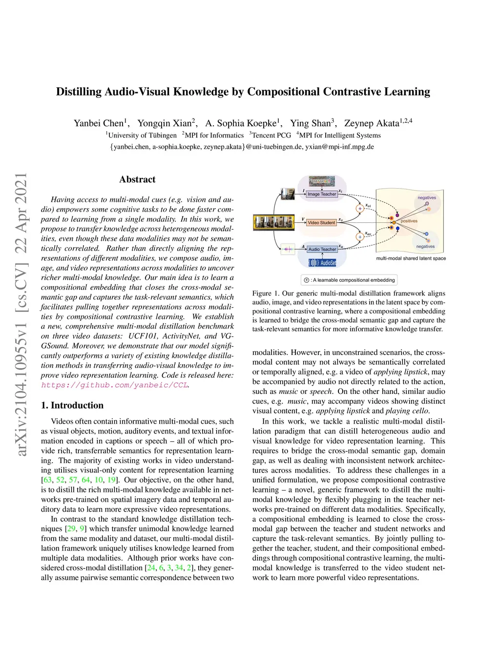 Distilling Audio-Visual Knowledge by Compositional Contrastive Learning