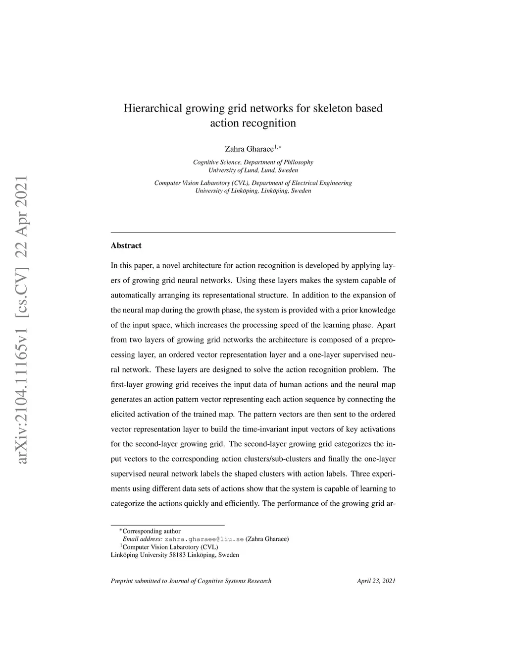 Hierarchical growing grid networks for skeleton based action recognition