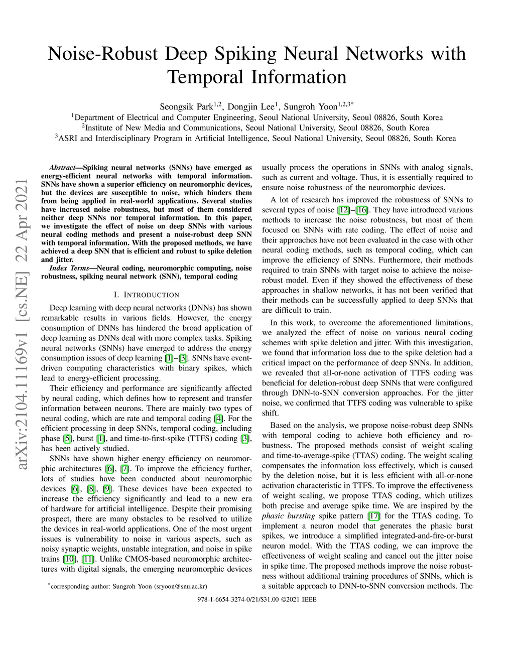 Noise-Robust Deep Spiking Neural Networks with Temporal Information