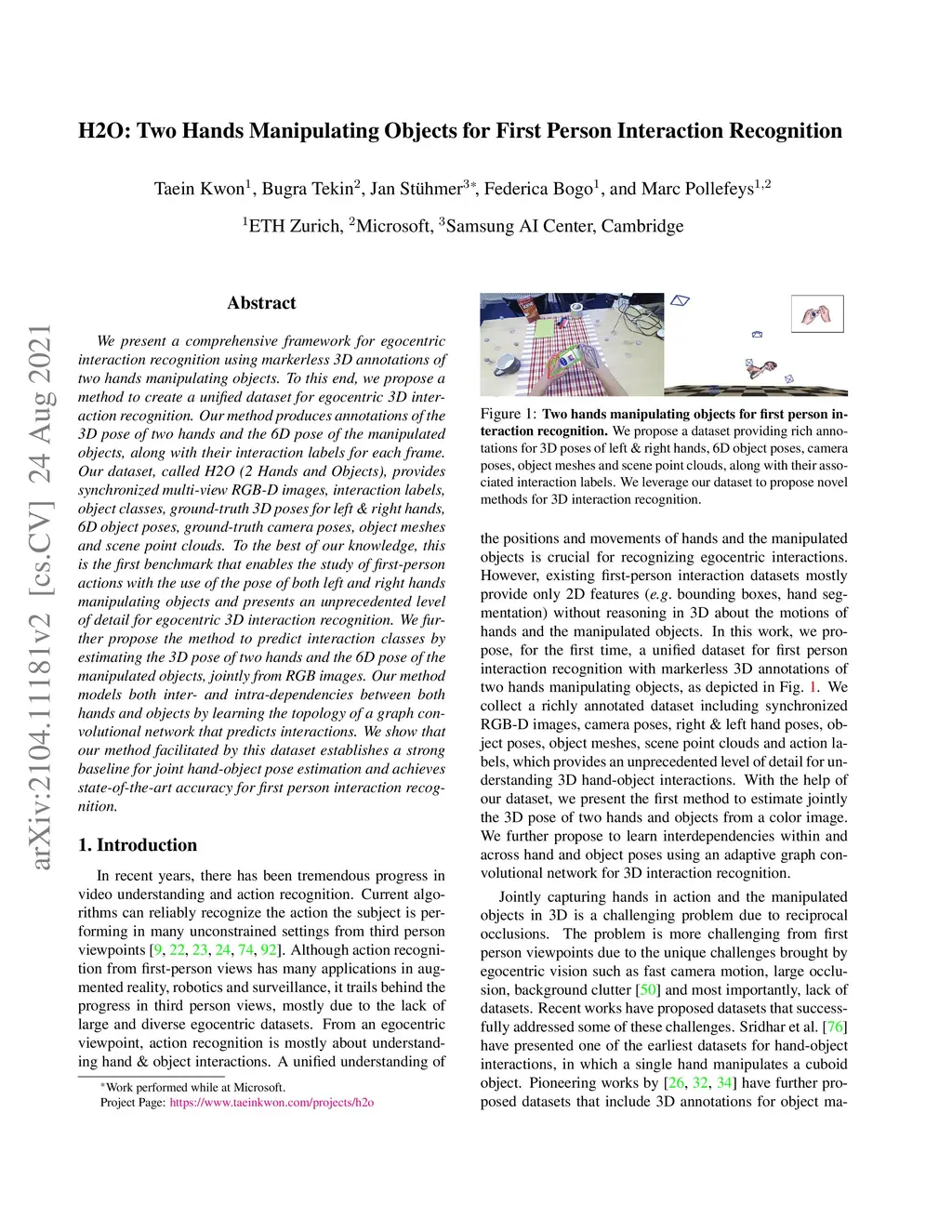 H2O: Two Hands Manipulating Objects for First Person Interaction