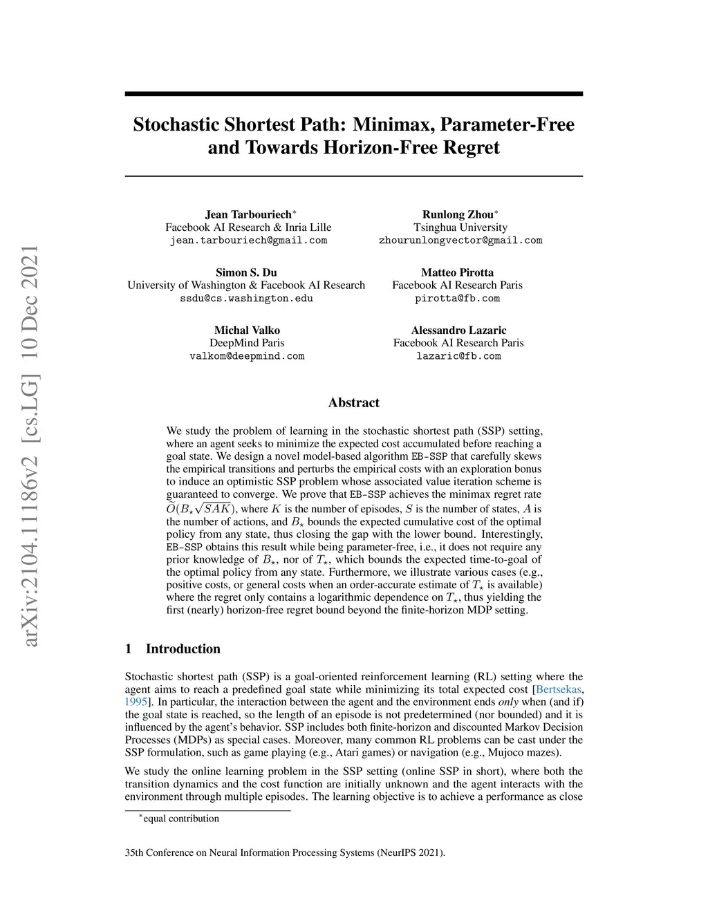 We study the problem of learning in the stochastic shortest path (SSP) setting, where an agent seeks to minimize the expected cost accumulated before reaching a goal state. We design a novel model-based algorithm EB-SSP that carefully skews the empirical transitions and perturbs the empirical costs with an exploration bonus to induce an optimistic SSP problem whose associated value iteration scheme is guaranteed to converge. We prove that EB-SSP achieves the minimax regret rate , where is the number of episodes, is the number of states, is the number of actions, and bounds the expected cumulative cost of the optimal policy from any state, thus closing the gap with the lower bound. Interestingly, EB-SSP obtains this result while being parameter-free, i.e., it does not require any prior knowledge of , nor of , which bounds the expected time-to-goal of the optimal policy from any state. Furthermore, we illustrate various cases (e.g., positive costs, or general costs when an order-accurate estimate of is available) where the regret only contains a logarithmic dependence on , thus yielding the first (nearly) horizon-free regret bound beyond the finite-horizon MDP setting.