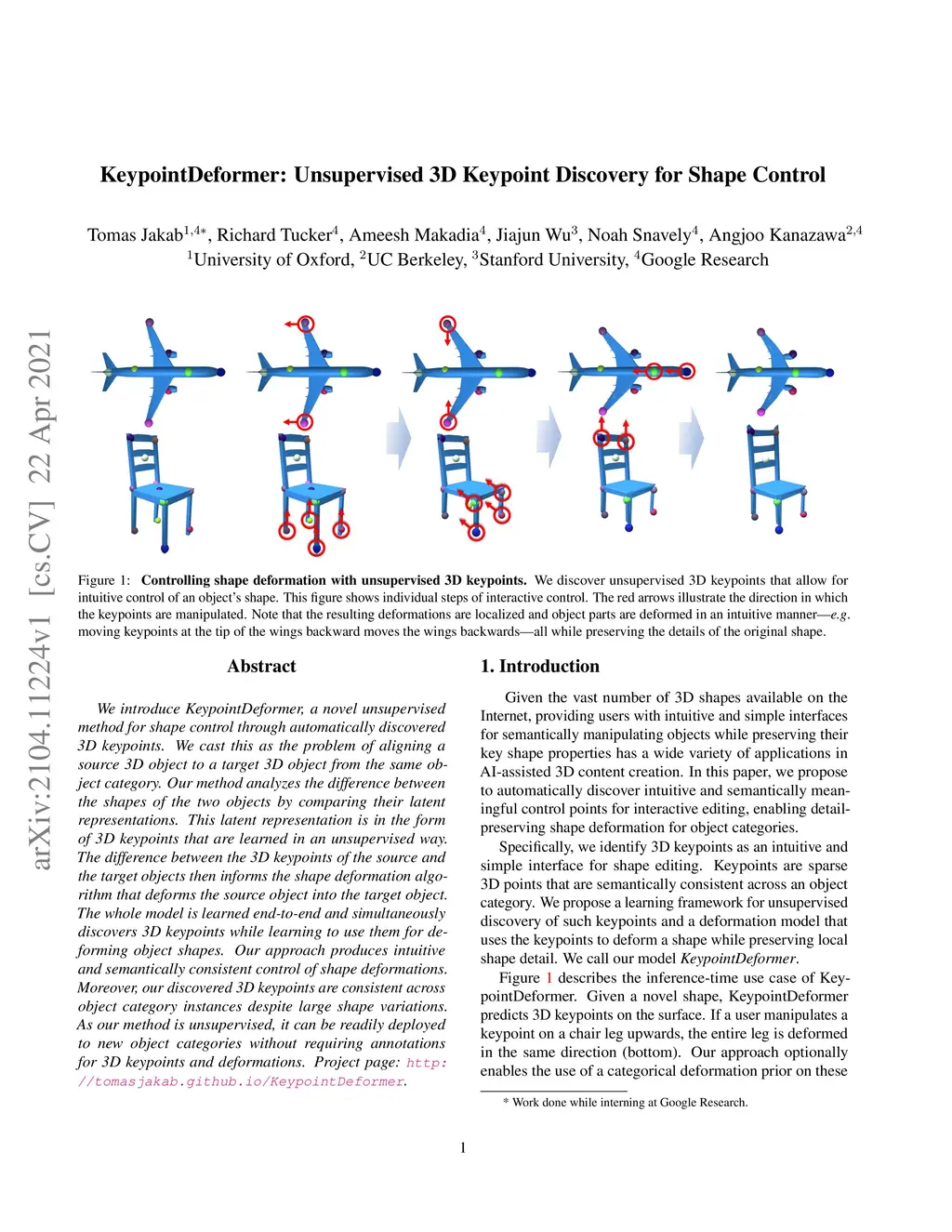 KeypointDeformer: Unsupervised 3D Keypoint Discovery for Shape Control